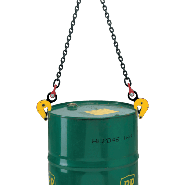For sealed or empty steel drums, one DC500 clamp provides secure lifting. When lifting full open-top drums, two clamps must be used in combination with a two-leg chain sling to ensure safe and balanced handling. The clamp attaches quickly to the drum rim, offering a strong and dependable grip throughout the lifting process.