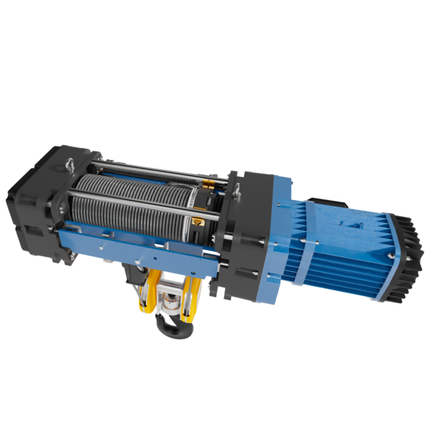 Electrical safety and reliability are ensured through IP-rated protection systems, thermal motor sensors, and integrated overload protection, ensuring safe operation in demanding industrial environments. The hoist is designed to operate in temperatures ranging from –10°C to +40°C, making it suitable for most indoor industrial applications.