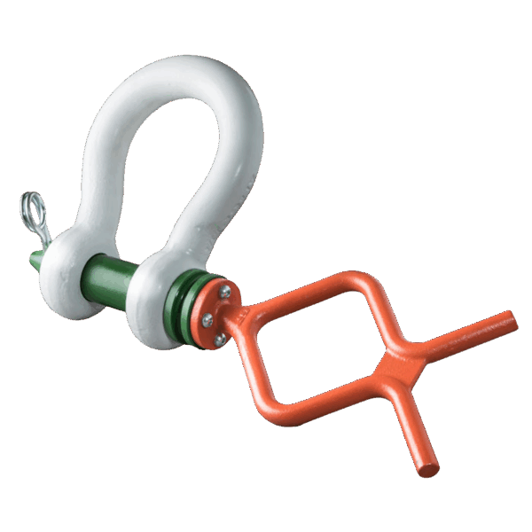 The Green Pin® Tapered Pin ROV Release & Retrieve Shackle with Fishtail Handle (GPROV5361F) is a Grade 8 polar alloy steel subsea shackle designed for ROV-assisted release and retrieval operations. Featuring a fishtail handle for precise remote control, this model is engineered for harsh offshore and subsea environments, operating reliably from –60°C to +200°C with a 5:1 safety factor.