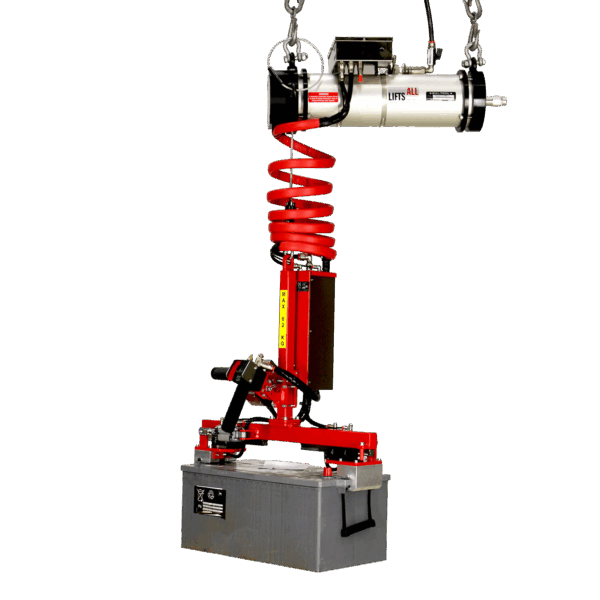 The Lifts All Battery Gripper 89-10768 is a robust and ergonomic mechanical lifting tool designed for handling bus and automotive batteries. It securely grips from the sides and allows precise, effortless lifting of batteries up to 62 kg, using proportional speed control (PSH) for smooth operation.