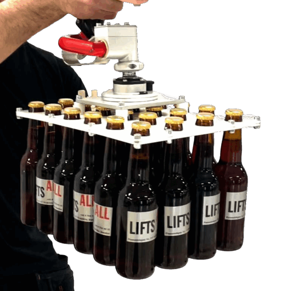 The Lifts All Manual & Automatic Bottle Grippers (88-10063 / 88-10032) provide a safe, ergonomic, and energy-efficient way to lift and handle up to 24 glass bottles (33 cl Longneck or Vichy) in one go.