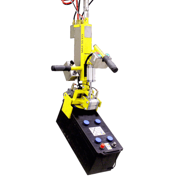 The Lifts All Battery Gripper 2426 is a durable and ergonomically designed mechanical lifting tool for car batteries and heavy power units. With a maximum lifting capacity of 55 kg, this pneumatic gripper enables operators to manoeuvre batteries safely and efficiently, without straining the back, neck, or shoulders.