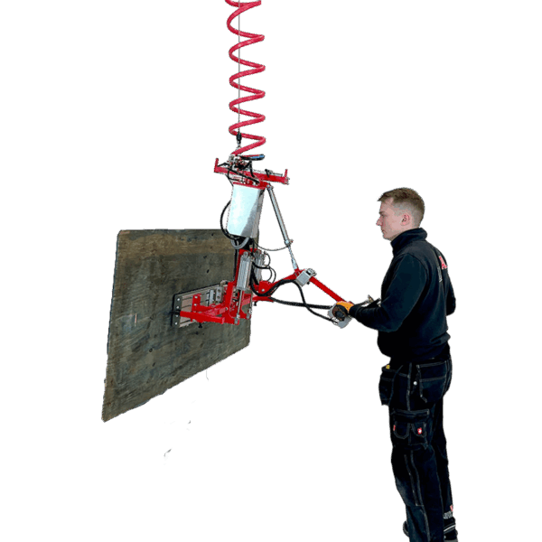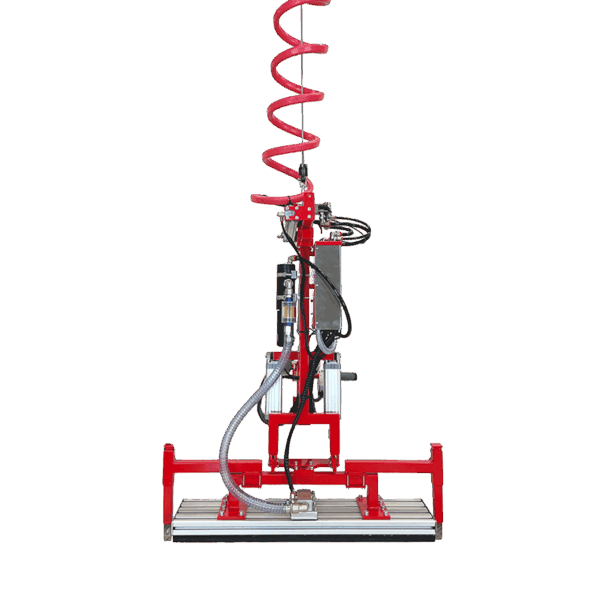 Equipped with a vacuum suction plate, the gripper securely attaches to the load, ensuring a firm and safe grip on pallets, boxes, or bags. Its proportional speed control (PSH) system allows smooth, precise lifting and lowering, giving the operator full control at all times.