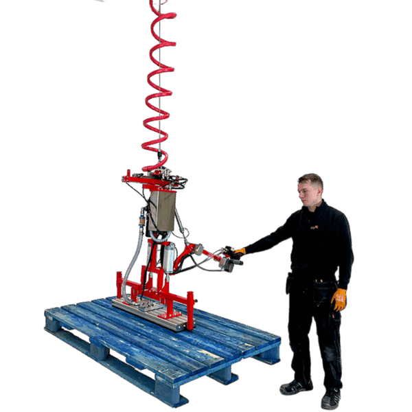 The Lifts All Pallet Gripper 89-12178 is a pneumatic vacuum lifting tool designed for handling pallets, pallet collars, and pallet lids. Compact, fast, and reliable, it allows one operator to complete palletising tasks safely and efficiently, reducing strain and increasing productivity in warehouses and production environments.