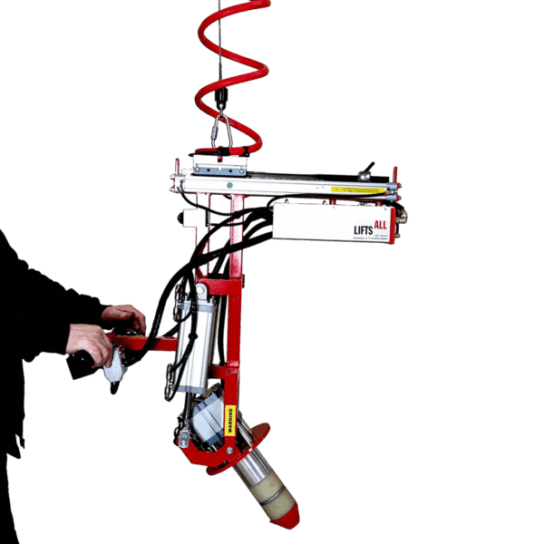 The Lifts All Roll Gripper 89-12155 makes lifting rolls safe and ergonomic. Designed to handle rolls up to 40 kg, it grips rolls from the core and allows both horizontal and vertical lifting, ideal for stacking or machine handling.