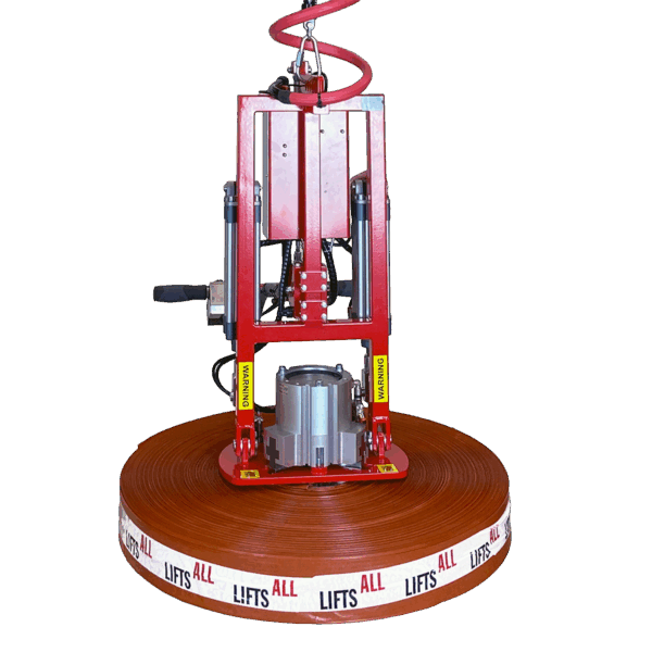 The Lifts All Sausage Skin Gripper 89-12142 is a custom-built lifting tool for charcuteries and food producers. It lifts, tilts, and transports rolls of sausage skin up to 50 kg smoothly and safely, improving ergonomics and workflow efficiency.