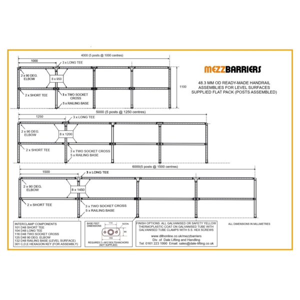MezzBarriers 42.4 mm OD Safety / Pedestrian Barrier Assemblies – Galvanised Finish (1m-6m Width)