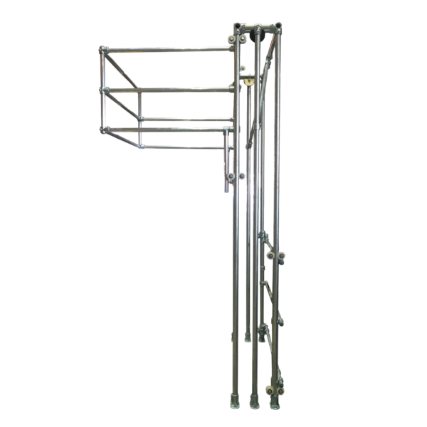 This updated Omega model is built entirely using the Mezz Barrier tube clamp system, ensuring a strong, durable structure with all replaceable parts and no welded components. Free-rolling nylon rollers and pulley-assisted movement make raising and lowering effortless. Operators benefit from access to three sides of the pallet, significantly improving loading efficiency and manoeuvrability.