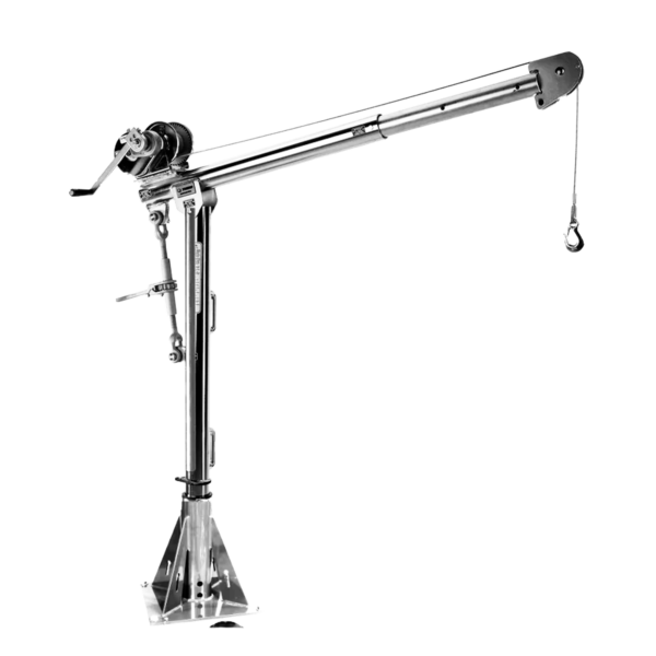 Maximum WLL: 540 kg Portable lifting davit crane system suitable for multiple work locations Telescoping boom with adjustable angles for flexible lifting positions Smooth 360� rotation for precise load handling Optional roller ball bearing and 12-position rotation lock for heavy load control Manual or powered winch options including electric, pneumatic, and hydraulic Quick-release pins for tool-free assembly and transport Heavy-duty welded steel construction for long service life Corrosion-resistant finishes including powder-coat, galvanised, epoxy, and stainless steel Multiple base mounting options � pedestal, flush, wall, or mobile wheel base CE Marked with Declaration of Conformity (DOC) 2-Year Standard Warranty