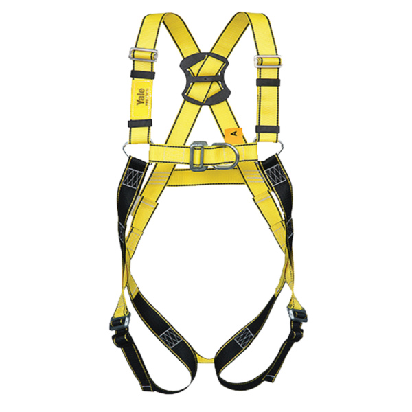 Yale CMHYP35XXL Two Point Full Body Safety Harness (XXL) with front and rear D-ring fall arrest attachment points, compliant with BS EN 361. Extra-large height safety harness designed to fit users up to 55″ chest size, offering flexible anchorage options for construction, industrial and maintenance work at height. Features adjustable fit, durable webbing construction and ISO 9002 manufactured quality. UKCA and CE certified.