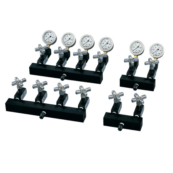 Each manifold is fully assembled and may be combined with a short hose HHC-10 and coupler half CFY-1 for flexible installation. Models with the GYA suffix include integrated pressure gauge sets (GYA-63) for continuous monitoring of each individual cylinder?s load.