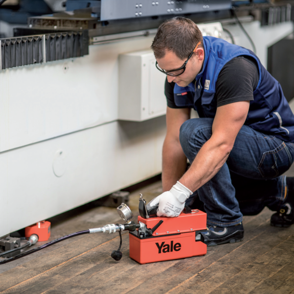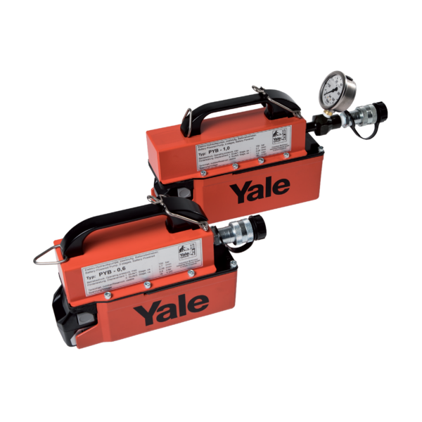 The Yale PYB cordless electric power pack is a lightweight, battery-driven hydraulic pump delivering up to 700 bar. Designed as a high-efficiency alternative to manual hand pumps, it offers fast, precise and fully mobile hydraulic operation at the push of a button.
